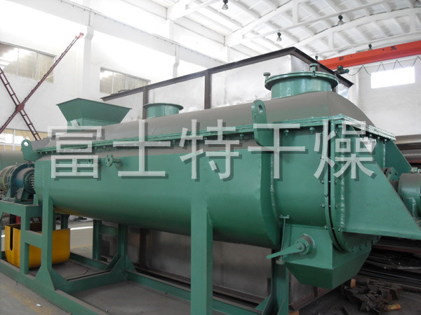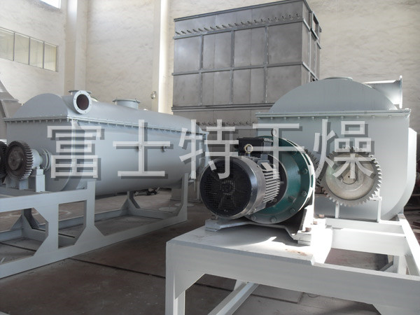 浆叶干燥机已成功地用于食品、化工、石化、染料、工业污泥等领域。设备传热、冷却、搅拌的特性使之可以完成以下单元操作:燃烧(低温)、冷却、干燥(溶剂回收)加热(融化)、反应和灭菌。搅拌浆叶同时又是传热面,使单位有效容积内传热面积增大,缩短了处理时间。楔型浆叶传热面又具有自清洁功能。压缩--膨胀搅拌功能使物料混和均匀。物料沿轴向成"活塞流"运动,在轴向区间内,物料的温度、湿度、混合度梯度很小。用导热油做热介质浆叶干燥机可完成低温燃烧工作。如:二水硫酸钙(Ca2SO4·2H2O) 燃烧转化为半水硫酸钙(Ca2SO4·1/22H2O)。碳酸氢钠(NaHCO3)经煅烧转化为纯碱(Na2HCO3)等。通入冷却介质,如水、冷却盐水等即可用来冷却。如:使用于纯碱行业的浆叶式凉碱机,取代老式的空气冷却凉碱机,节省了能源及尾气处理设备,降低了操作费用。干燥设备主要的功能,不使用热空气,使溶剂回收、能源消耗、环境控制处于易处理的理想状态。对需回收溶剂、易燃易氧化热敏性物料尤为适应。已广泛用于精细化工、石化、染料行业。轴向区间内,温度、湿度、混合度的均匀性,使得设备可用来加热或融化,或进行一些固体物料反应。在复合肥及变性淀粉行业均已成功使用。浆叶干燥机可用来对食物和面粉进行灭菌处理。单位有效容积内大的加热面积,很快就将物料加热到灭菌温度,避免了长时间加热而改变物料品质。