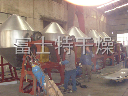 ◎在动力驱动下,罐体作缓慢旋转,罐内物料不断地混合,从而达到强化干燥的目的。