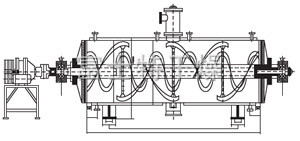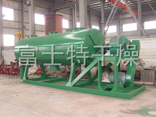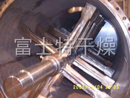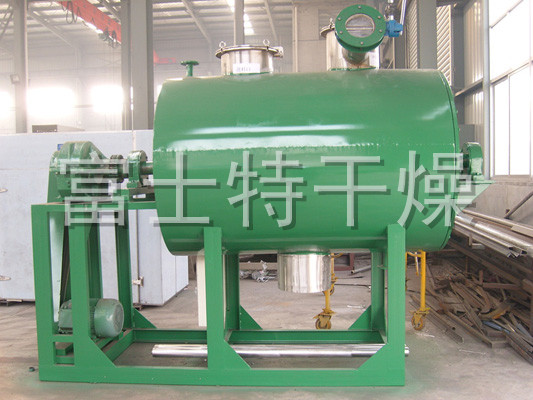 本机是一种新颖卧式间歇式真空干燥设备,湿物料经传导蒸发,带有刮板搅拌器不断清除热面上的物料,并在容器内推移形成循环流,水份蒸发后由真空泵抽出。