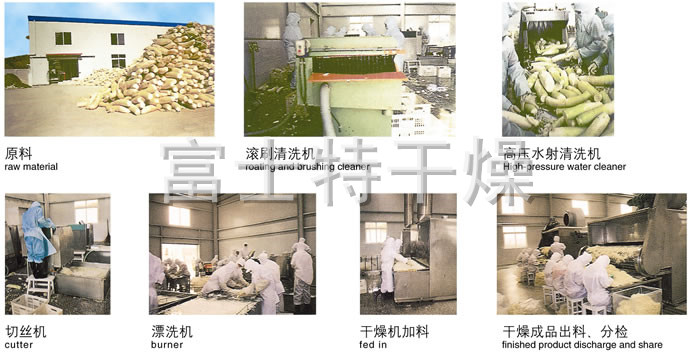 干燥的典型物料有:蒜片、南瓜、胡萝卜、魔芋、山药、竹笋、辣根、洋葱、苹果等。