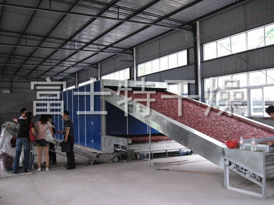 能满足根、茎、叶类条状、块状、片状、大颗粒状等蔬菜物料的干燥和大批量连续生产,同时能最大限度的保留产品的营养成份及颜色等。