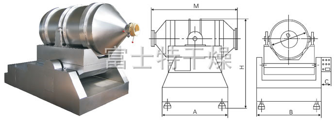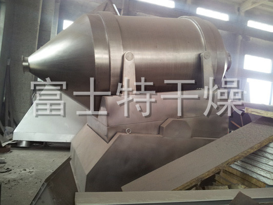 EYH二维混料机的转筒可同时进行二个运动,一个为转筒的转动,另一个为转筒随摆动架的摆动。被混合物料在转筒内随转筒转动、翻转、混合的同时,又随转筒的摆动而发生左右来回的掺混运动,在这两个运动的共同作用下,物料在短时间内得到充分的混合。EYH二维混料机适合所有粉、粒状物料的混合。