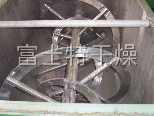 该机型由容器、螺旋搅拌叶片和传动部件组成:螺旋叶片一般做成双层或三层,外层螺旋将物料从两侧向中央汇集,内层螺旋将物料从中央两侧输送,形成对流混合。